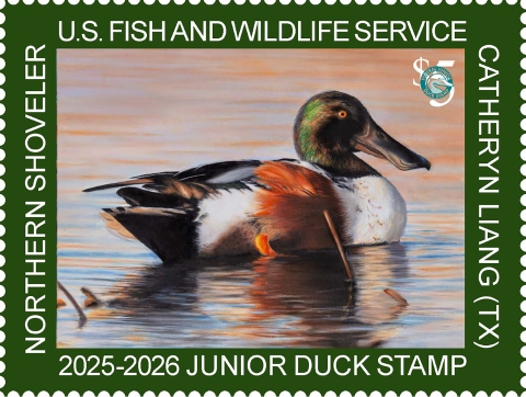 The Federal Junior Duck Stamp Conservation and Design Program offers a national art contest from which a winning design is chosen for a $5 Junior Duck Stamp. All of the revenue from the sale of these stamps supports recognition and environmental activities for students participating in the program.